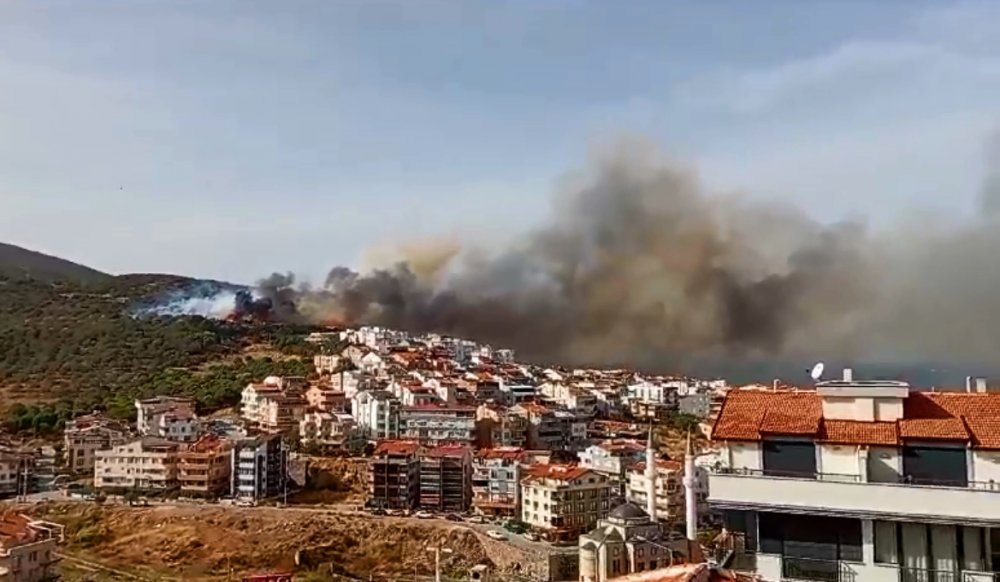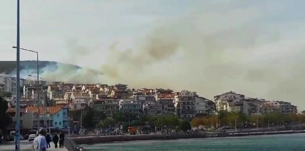 İzmir'in Dikili ilçesinde yerleşim yerine yakın makilik alanda çıkan yangın vatandaşlar arasında korku yarattı.