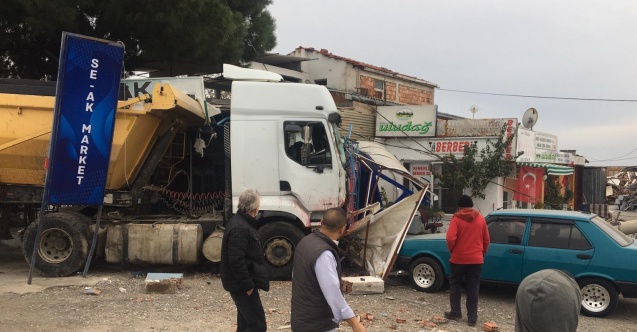 Dikili'de, sürücüsünün TIR'a çarpmamak için manevra yaptığı harfiyat kamyonu, park halindeki 11 araca çarparak durdu.