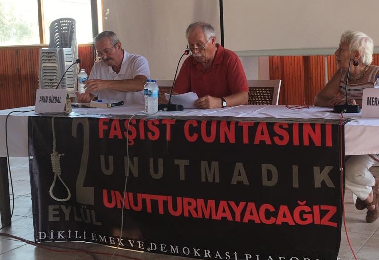 Dikili Emek ve Demokrasi Platformu tarafından düzenlenen etkinlikte birde basın açıklaması okundu. Basın açıklamasında, 12 Eylül faşist cuntasının üzerinden 42 yıl geçmiş olmasına rağmen izlerinin unutulmadığı belirtildi.