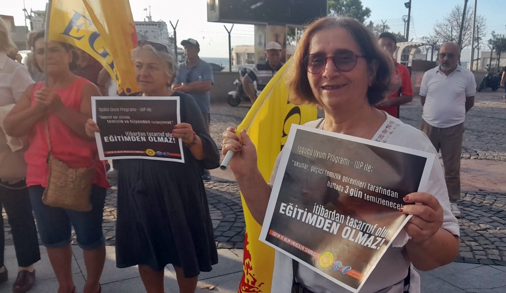 Dikili'de, İşgücü Uyum Programı’na karşı basın açıklaması yapıldı. Açıklamada; "Tasarruf adı altında temizlik ve hijyenden vazgeçilecek; İtibardan tasarruf olur, eğitimden olmaz!" denildi.