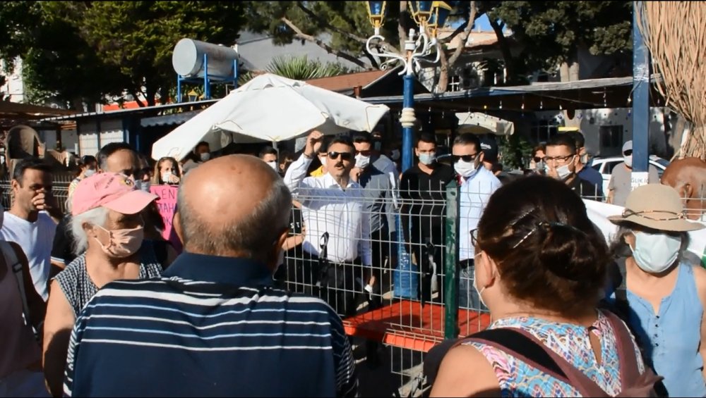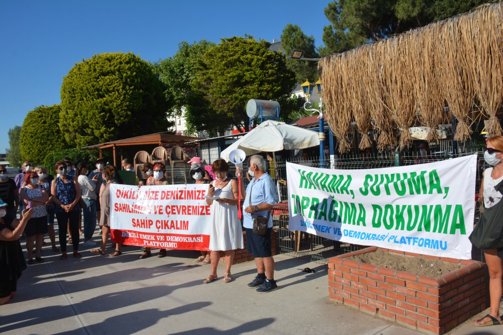 Küçük liman önüne çekilen çit örgünün önünde yapılan basın açıklamasına Dikili Emek ve Demokrasi Platformu bileşenlerinin yanı sıra vatandaşlar yoğun ilgi gösterdi. Basın açıklamasına Dikili Belediye Başkanı Adil Kırgöz, CHP’li meclis üyeleri, CHP İlçe Yönetimi ve belediye çalışanları ile birlikte katıldı.