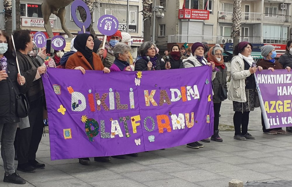 8 Mart Dünya Emekçi Kadınlar Günü nedeniyle Dikili Bülent Ecevit Bulvarı'nda buluşan kadınlar, Atatürk Meydanı'na kadar yürüyüş yaptılar. Atatürk Meydanı'nda ise sloganlar eşliğinde basın açıklaması okudular.