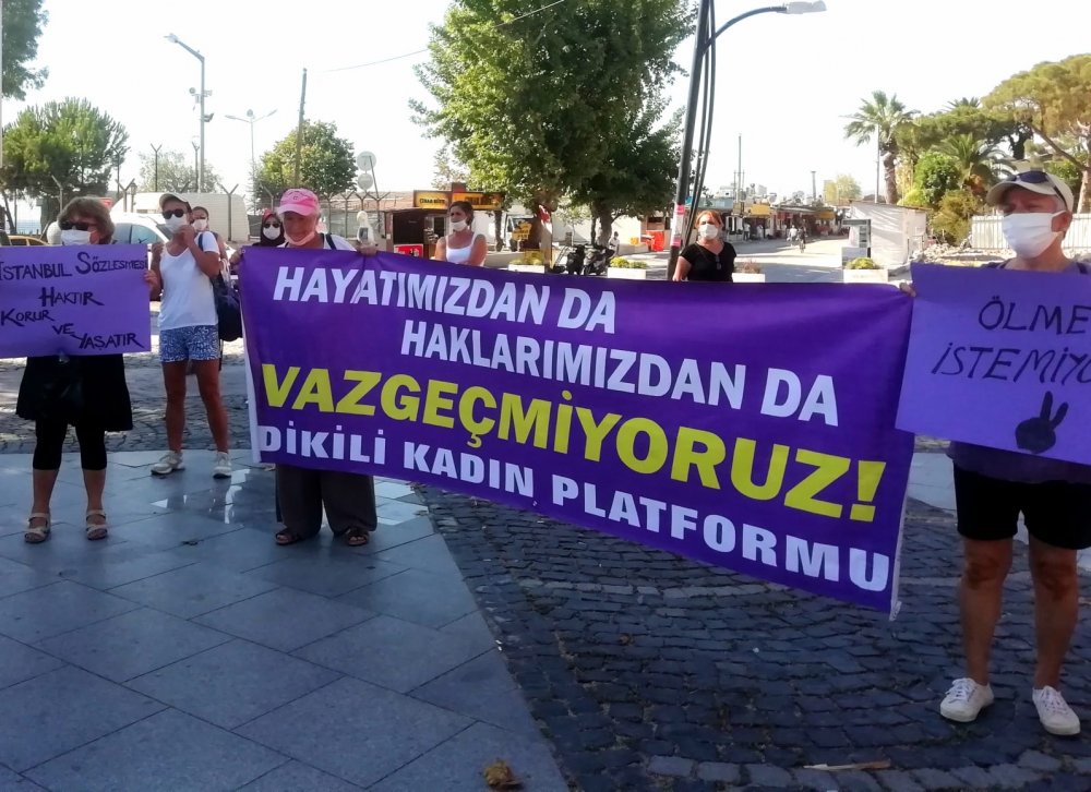 Dikili Atatürk Meydanı’nda gerçekleştirilen eyleme Dikili Kadın Platformu da destek verdi. Basın açıklaması ise Kent Konseyi Kadın Meclisi Temsilcisi Neslihan Kutlu Maraş tarafından okundu. Açıklama sırasında grup tarafından “Kadın, yaşam, özgürlük”, “Tecavüzü aklama, sözleşmeyi uygula” ve “Kadınlar eşit yaşayacak” sloganları atıldı.