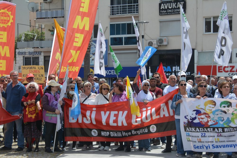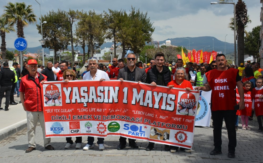 Bülent Ecevit Bulvarı’ndan başlayan ve Atatürk Meydanı’nda sona eren geleneksel 1 Mayıs yürüyüşü ise Dikili ve Bergama Demokrasi Platformu’nun yanı sıra, KESK, DİSK Genel-İş, Dikili Belediyesi İşçileri, Eğitim-Sen, TÜM-BEL-SEN, SES, Dikili Kadın Platformu, Türkiye Ormancılar Birliği, Bergama Çevre Platformu, Dikili Kültür ve Çevre Platformu, Dikili Alevi Kültür Derneği, Bergama Veli-Der, Dikili Belediyesi Briç Kulübü, CHP, HDP, EMEP, Sol Parti, TKP’nin de katıldığı yürüyüş ile başladı. 1 Mayıs kutlamalarına Dikili Belediye Başkanı Adil Kırgöz ile Bergama’nın önceki dönem Belediye Başkanı Mehmet Gönenç te destek vererek işçileri selamladı.