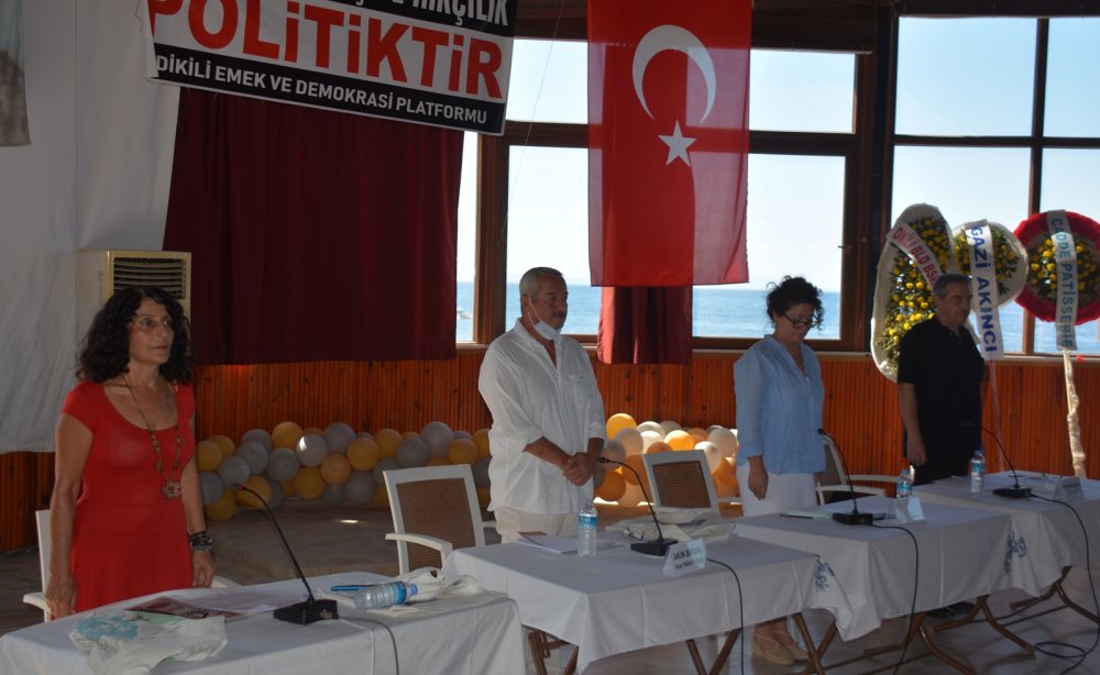 Dikili Emek ve Demokrasi Platformu’ndan Pervin Çakıcı’nın yönettiği panel, göç sırasında yaşamını yitiren mülteciler için bir dakikalık saygı duruşu ile başladı.