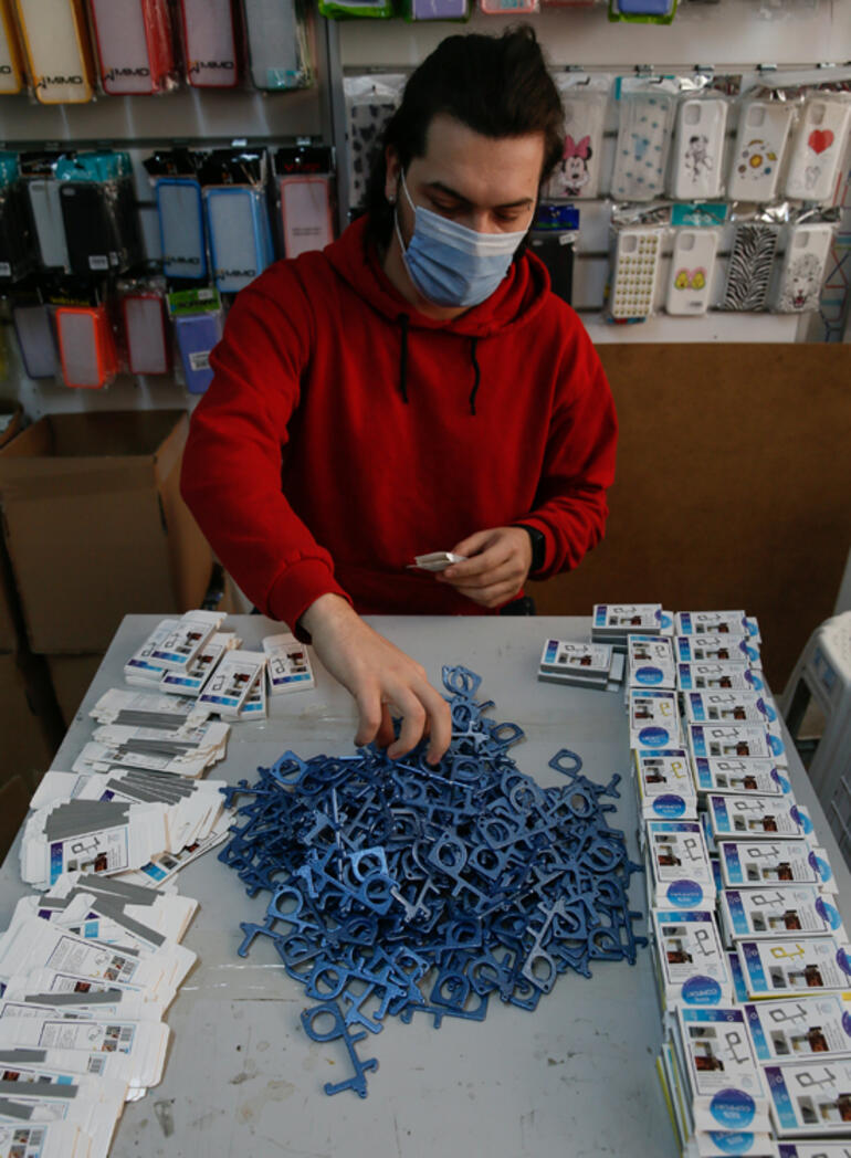 Kocakuş, insanların bulaş riskinden dolayı çeşitli yüzeylerle teması en aza indirmek için çaba gösterdiği bu süreçte, kamusal alanlarda kapı kolu, poşet, asansör düğmesi gibi yüzeylere dokunurken kullanılacak bir aparat geliştirmeye karar verdi.