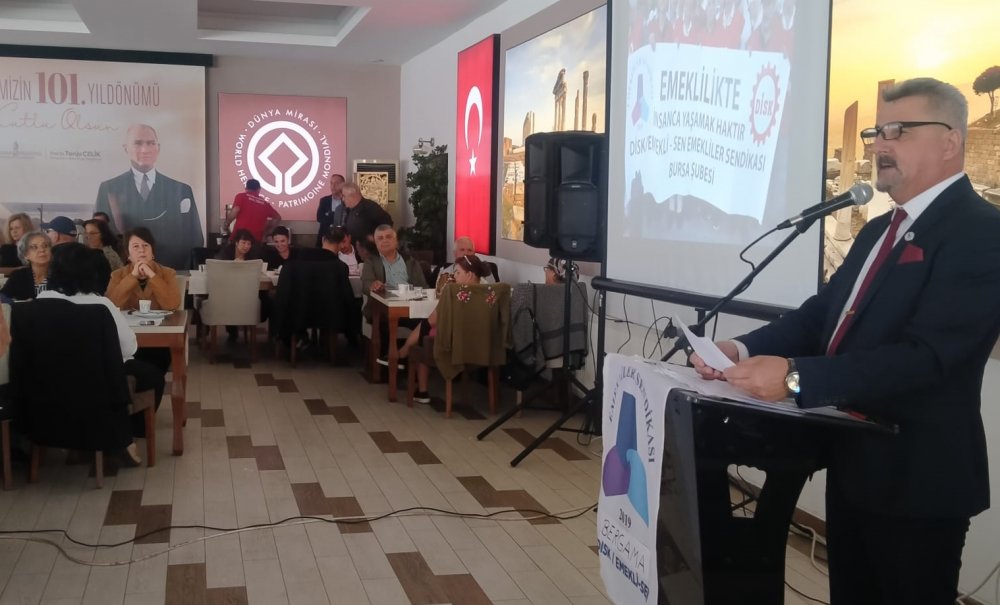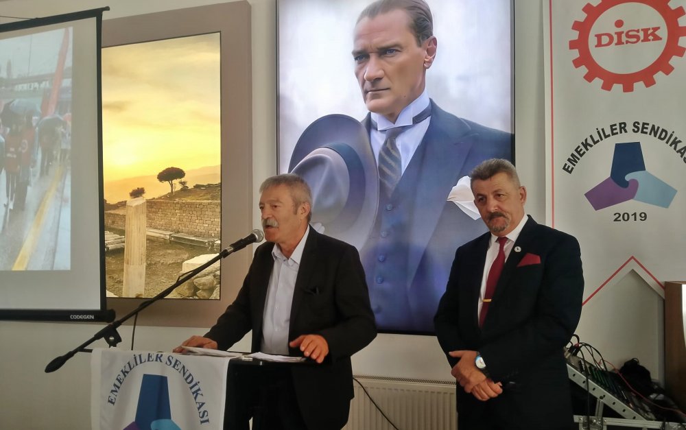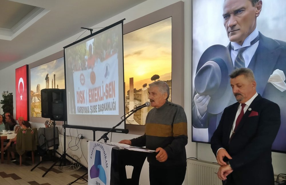 Ege Bölge Temsilcisi Sabahattin Yeşiltepe ise; “Öncelikle birlik ve beraberliğimizi gösterdiğimiz bu buluşmada emeği geçen herkese teşekkür ediyorum. Gelinen noktada yaşadığımız sıkıntıları biliyoruz. Hak, hukuk ve adaletin olmadığı bir süreçten geçiyoruz. Seçimle gelmiş insanlara kayyum atıyorlar, 13 yaşındaki çocuklara tecavüz ediliyor, ormanlarımız yakılıyor. Bugün slogan attığımız hak, hukuk, adalete çok ihtiyacımız var. Biz mücadelenin nasıl gerçekleşeceğini bilenleriz. Yapılanlara karşı nasıl mücadele edeceğimizi biliriz. Ulu önder Atatürk ‘Arkadaşlar yarın cumhuriyeti kuruyoruz’ dediğinde yanındakiler bile inanmamıştı. Cumhuriyet kuruldu ve biz bu yolda yürüyerek mücadelemizi sürdürüyoruz. Biz emekliler her yerde her zaman varız” dedi.