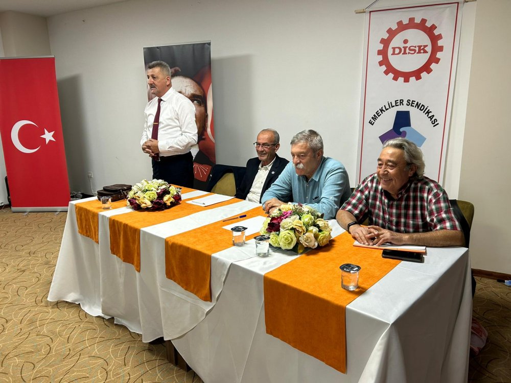 Toplantıda konuşma yapan Ege Bölge Başkanı Sebahattin Yeşiltepe; “16 Milyon emekli var ve bu 16 milyon emeklinin 10 milyonu 10 bin liranın altında maaş alıyor. 3 milyon 800 bin çalışan emekli de asgari ücret üzerinden 17 bin lira maaş alıyor. 2 milyon arkadaşımız ise tabanları yüksek olduğu için asgari ücretin biraz üzerinde maaş alıyor. Yani biz bu toplumun ezilenleriyiz. Biz ancak kendimiz örgütlenerek hakkımızı arama mücadelesini yaparız. Örgütlü olursak neler yapacağımızı gösterdik. 31 Mart’ta sarı kart, 1 Mayıs’ta da kırmızı kartlarımızı gösterdik. Biz ezilenler olarak aç bırakılsak ta mücadelemizi asla bırakmayacağız” dedi.