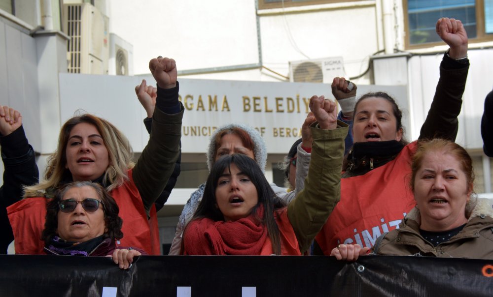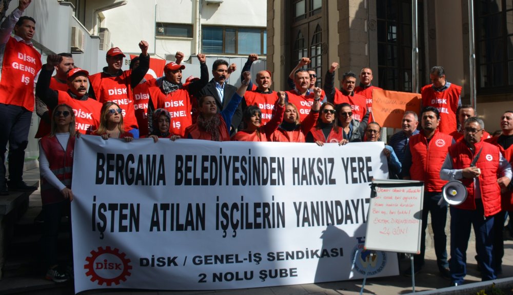 Bergama Belediyesi, 7 Şubat 2020 Cuma günü mesai bitiminde DİSK üyesi üç kadın işçiyi işten çıkardı. İşten çıkarılan Nazlı Deniz Tan, Alev Çakır ve Gonca Çetin İkiz 10 Şubat 2020 Pazartesi günü “İşimizi İstiyoruz” yazılı yeleklerle belediyenin önünde eyleme başladı...