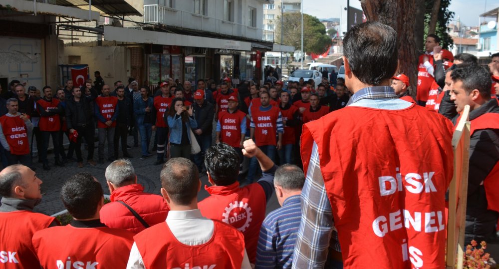 Üç sesle başladı mesai saati Belediye önünde; “İnadına sendika İnadına DİSK...”