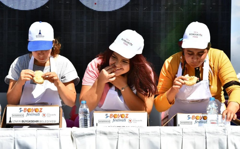 Kadınlar ve erkekler kategorisinde yapılan yarışmaya yüzlerce İzmirli rağbet gösterirken, yapılan çekilişle yarışacak 10’ar aday belirlendi. Kadın yarışmacılar 15 boyozu 5 dakika içinde bitirebilmek için kıyasıya yarıştı. Yarışmada birinciliği 8 boyoz yiyen 36 yaşındaki Ayşegül Aksoy kazandı. Erkekler kategorisinde ise rakipler oldukça iddialıydı. 20 adet boyuzu ilk bitirenin galip geleceği yarışmada birinciliği 9 boyoz yiyen 39 yaşındaki Turgay Yılmaz kazandı. Yarışmayı birinci bitirenlere İzmir Büyükşehir Belediyesi tarafından bisiklet hediye edildi. Festivalin organizasyonunda yer alan Radyo Romantik Türk DJ’lerinin müzikleri eşliğinde İ zmirliler keyifli bir gün geçirdi.