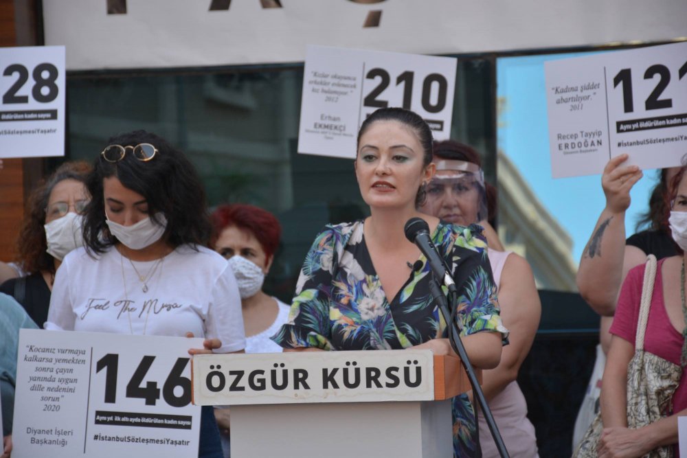 "Görünen odur ki; iktidar ve onun koltuğuna yaslananların bugün, "batının bizi denetlemesinin önünü açıyor" diyerek İstanbul Sözleşmesinin kaldırılmasını istemelerinin altında, kendi fail pozisyonlarını koruma saiki yatmaktadır. Kadın mezarlığına dönüşen bu ülkede mevcut kazanımlarımızın geri alınması demek, öldürülen kadınların anılarına saygısızlıktır. Fakat bilinmelidir ki; başta İstanbul Sözleşmesi olmak üzere hiçbir kazanımı geri vermemeye kararlıyız. Kadınlar yılmadan, geri adım atmadan, bıkmadan, usanmadan kazanılmış haklarını savunmaya devam edecekler. Çünkü; bizler İSTANBUL SÖZLEŞMESİ YAŞATIR DİYOR VE İSTANBUL SÖZLEŞMESİ’NİN UYGULANMASINI İSTİYORUZ.!"