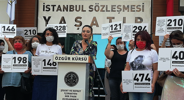 "Bizler sadece katillerin en ağır cezalara mahkûm edilmesiyle kadınlara yönelik cinayet ve diğer şiddet biçimlerinin son bulmayacağını çok iyi biliyoruz. Siz kadınlara taahhüt ettiğiniz, İstanbul Sözleşmesi’ni uygulamadığınız sürece; ne cinayetler, ne kadın ve kız çocuklarına yönelik şiddet ne de LGBTİ+ bireylere yönelik nefret suçları ve kamusal alanda uygulanan ayrımcılık engellenecektir."