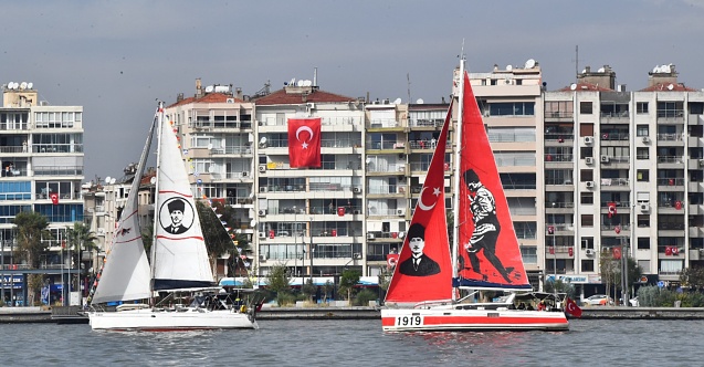 İzmir Marina’dan Bostanlı’ya kadar Körfez’de tur atan Türk bayraklı ve yelkenlerinde Atatürk’ün fotoğrafları bulunan tekneler Cumhuriyet coşkusunu denize taşıdı.