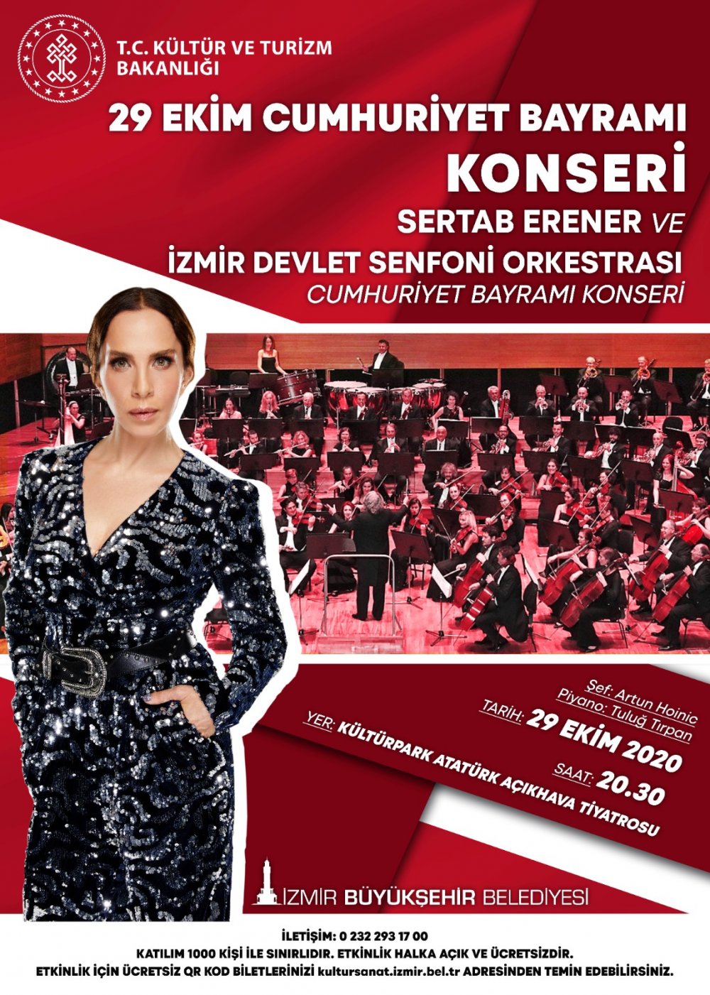 Cumhuriyet Bayramı kutlamaları çerçevesinde Sertap Erener ve İzmir Devlet Senfoni Orkestrası 29 Ekim 20.30’da Kültürpark Atatürk Açıkhava Tiyatrosu’nda dev bir konser verecek.