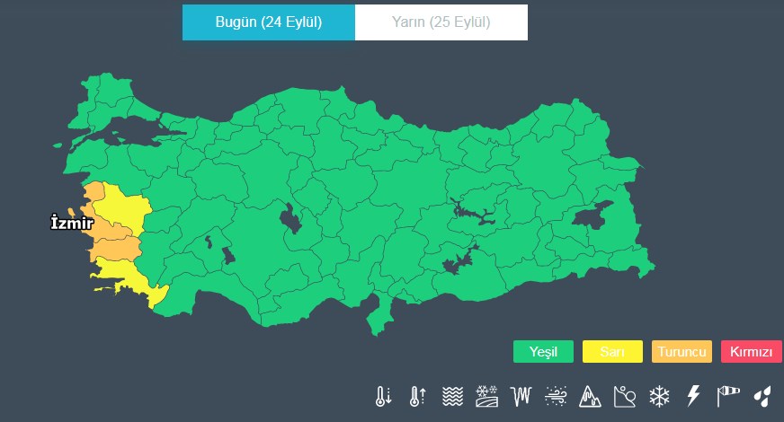 Meteouyarı sisteminde İzmir’in bazı ilçelerinde kırmızı alarmın bir altı olan ‘turuncu alarm’ verildi.