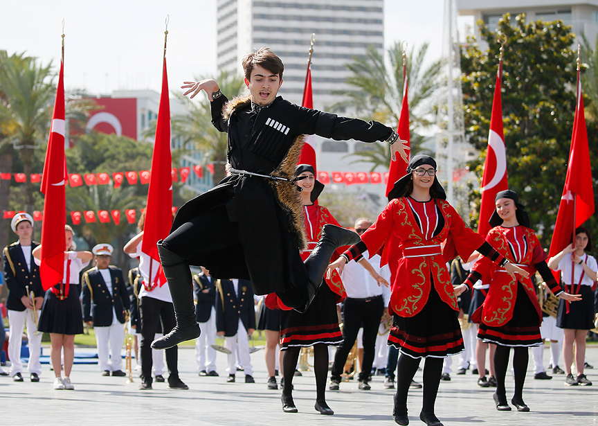 Konuşmaların ardından öğrenciler şiir okudu. Törende İzmir Yüksek Teknoloji Üniversitesi Halk Dansları, Dokuz Eylül Üniversitesi Folklor toplulukları ile İzmir Gençlik ve Spor İl Müdürlüğü tekvando grubu gösterileri büyük ilgi gördü. Güreş, ritmik jimnastik gösterileri ise nefes kesti. Tören Türk bayrakları ile Atatürk fotoğrafının yer aldığı Türk bayrakları eşliğinde sporcuların ve İzmirliler’in meydanda oluşturduğu coşkulu görüntü ile sona erdi.
