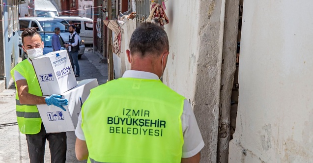 İzmir Büyükşehir Belediyesi, Birleşmiş Milletler Mülteciler Yüksek Komiserliği ve Uluslararası Göç Örgütü işbirliğinde mültecilere gıda ve hijyen paketleri dağıtmaya başladı.