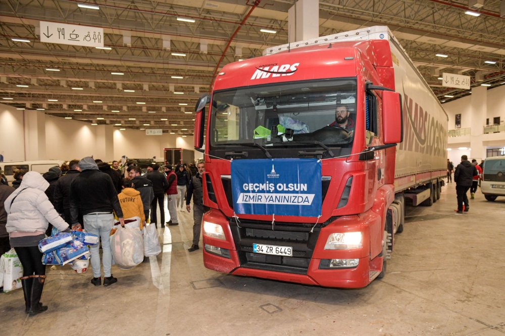 İzmir Büyükşehir Belediyesi’nin afet bölgesine oluşturduğu yardım koridoruyla bugüne kadar 162 tır, 124 kamyon, 3 uçak, 3 gemi, 5 otobüs kargo ile insani yardım malzemesi sevk edildi.