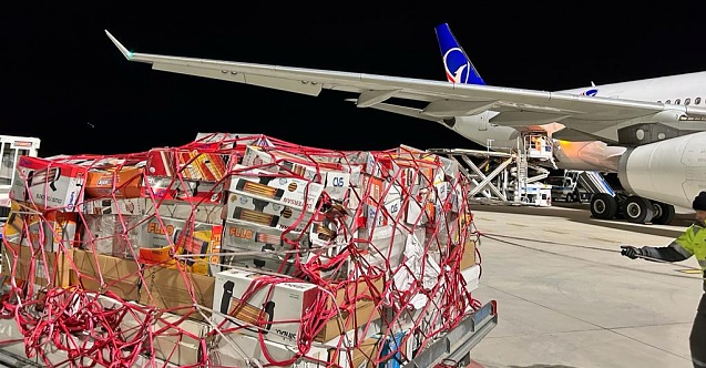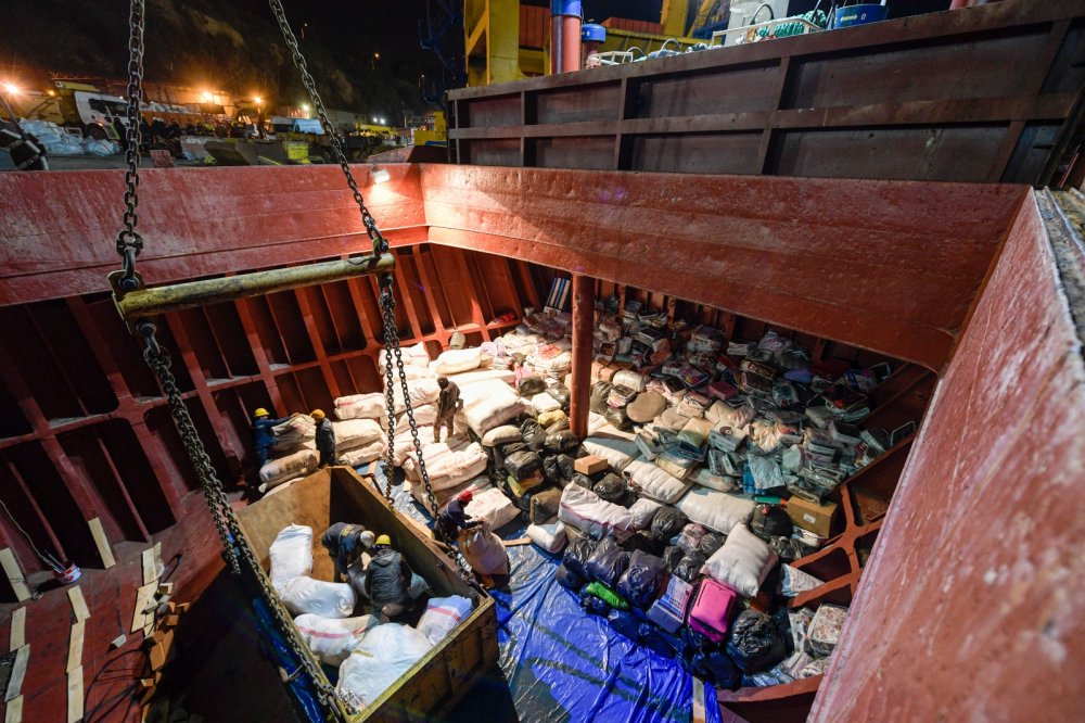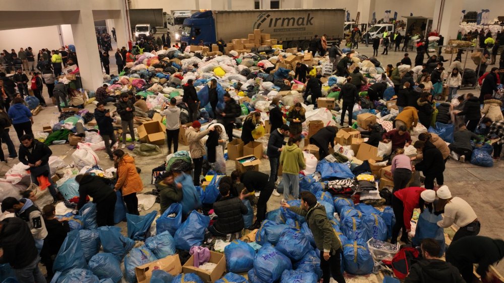 Deprem bölgesine ulaştırılmak üzere 11 tır, iki uçak ve bir gemiyle toplamda 42 bin 830 battaniye, 2 bin 532 elektrikli ısıtıcı, 250 kömür sobası, 2 bin paket bebek bezi, 2 bin 480 yorgan, 3 bin yastık, 128 paket bebek maması, 3 bin 960 paket hijyenik ped, 64 bin 61 giyim malzemesi, 810 çift çizme, 400 yağmurluk, 3 bin 11 uyku tulumu, 2 bin 360 uyku matı, 6 bin 843 paket hijyen paketi, bin 286 gıda kolisi, 51 bin 956 su, 200 çadır, 500 çadır zemin malzemesi, 290 kamp sandalyesi, 24 koli anne bebek kolisi, 10 bebek yatağı, 9 bin 650 cerrahi maske, 10 koli ilk yardım malzemesi, 10 ton yakacak, 500 hasta bezi, 200 powerbank, 144 adet 5 litre su, bin 200 adet 1,5 litre su, 514 yatak süngeri gönderildi.