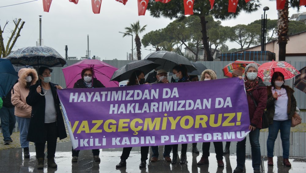 Açıklamada ayrıca; "Devlet şiddetsiz yaşam hakkını tanımıyor. Her gün en az üç kadın cinayeti yaşanan ülkemizde İstanbul Sözleşmesi'nden çekilme kararı 19 Mart 2021 gecesinde resmi gazetede yayınlandı. Hayatlarımızı sarsmak için yayımlanan bu kararı kabul etmiyoruz. Biz cinayetlerin ve şiddetin önlenmesi hatta cezalandırılması için daha etkin çalışmalar beklerken, dayatılan bu talihsiz karar politiktir"
