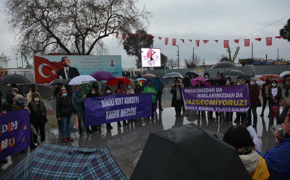 Kadınlar, yaşamları için hayati öneme sahip İstanbul Sözleşmesi'ne tepki olarak Türkiye'nin birçok yerinde sokağa çıktı. Kararla ilgili kadın platformları, hükümeti kararı geri çekmeye ve sözleşmeyi uygulamaya çağırırken, Dikili'deki kadınlar da durumu basın açık açıklamasıyla protesto etti.