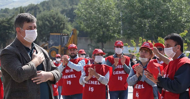 Koronavirüs tedbirleri kapsamında sosyal mesafe kuralına uyularak gerçekleştirilen buluşmaya; tüm işçileri temsilen bir grup çalışan ile belediye bürokratları, meclis üyeleri ve sendika temsilcileri katıldı. Tören alanında işçilerin alkışlarıyla karşılanan Başkan Tugay “Bu büyük ailenin bir parçası olmaktan onur duyuyorum. Birlikte bir yıl görev yaptık, hep beraber dayanışma içerisinde çalıştık. Sizlere inanıyorum. Sizlerin de her zaman bana inanmanızı istiyorum. Emin olun daha yapacak çok işimiz var” dedi.