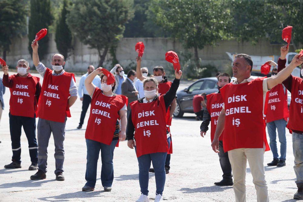 DİSK’e bağlı Genel-İş 8 No'lu Şube Başkanı Deniz Şahin Gümüştekin de konuşmasında şunları kaydetti: “1Mayıs bizim için direniştir, emektir, mücadeledir, haktır. Bizim için 1 Mayıs; meydanlardır, Taksim’dir, Gezi’dir. ‘Ekmeğimizi kazanırken, hayatımızı kaybetmek istemiyoruz’ diyen ve iş yerinde önlem alınmadığı için bulaşıcı hastalık yüzünden yitirdiğimiz Hasan Oğuz’dur. Aliağa’da işinden atıldıktan bir süre sonra kansere yakalanıp işine geri dönemeden aramızdan ayrılan Mehmet Emin Savur’dur. Bizim için 1 Mayıs, Abdullah Baştürk’tür, Kemal Türkler’dir. 1977’de kaybettiğimiz canlardır. 1 Mayıs her yerdedir. Bir dahaki 1 Mayıs’ta alanları coşkuyla doldurmak umuduyla, yaşasın işçi sınıfının birlik, mücadele ve dayanışma günü 1 Mayıs, yaşasın DİSK, yaşasın Genel İş!.”