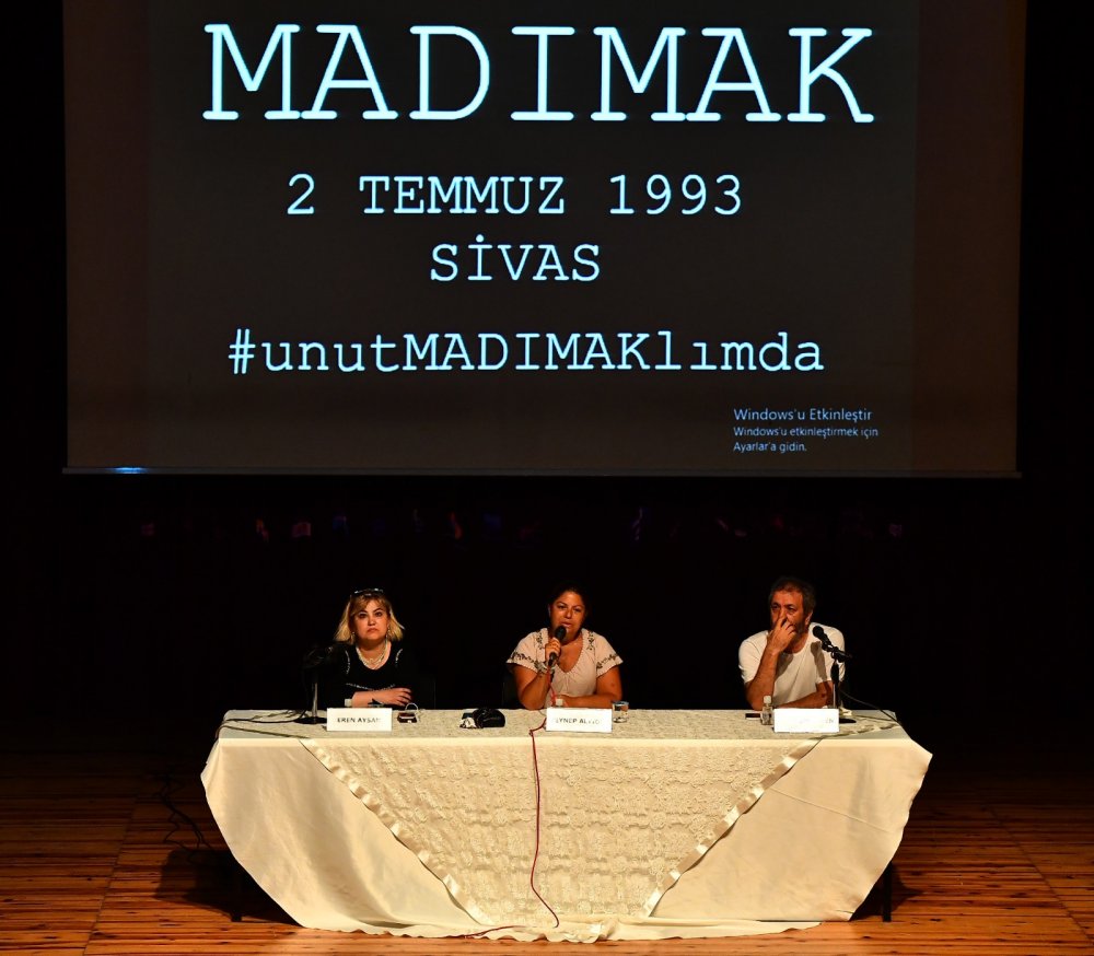 İzmir Büyükşehir Belediyesi, 2 Temmuz 1993 günü Sivas'taki Madımak Oteli'nde yakılarak öldürülen 33 aydını bir panelle andı. Katliamın 27. yıl dönümünde düzenlenen panele, otelde yakılarak öldürülen 33 aydından Behçet Aysan'ın kızı Eren Aysan ile Metin Altıok'un kızı Zeynep Altıok ve Ozan Nesimi Çimen'in oğlu sanatçı Mazlum Çimen konuşmacı olarak katıldı. Programı İzmir Büyükşehir Belediye Başkanı Tunç Soyer de izledi.