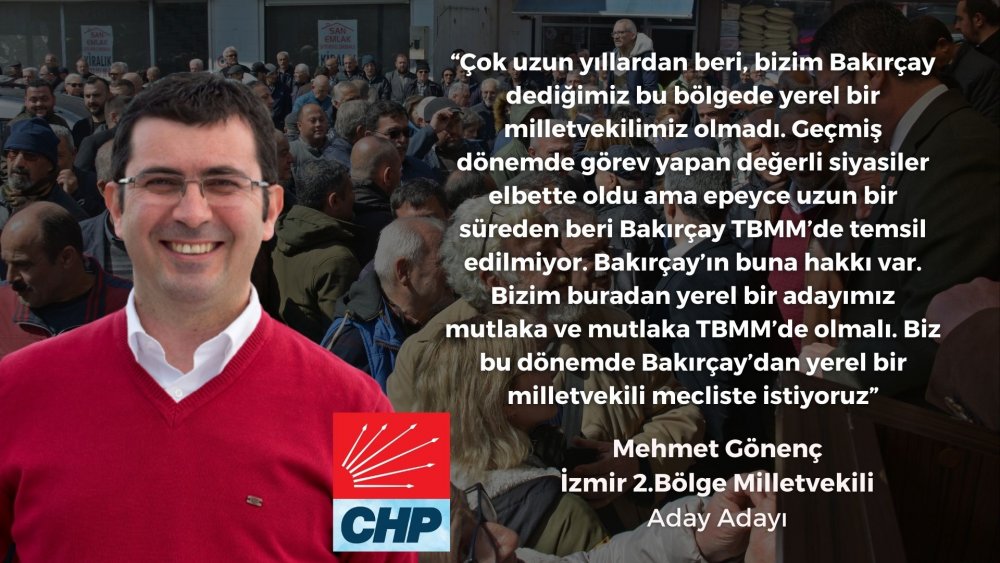 “İzmir’in kuzeyinde yer alan Bakırçay bölgesi, siyasette temsilci bulamamanın bir süredir sıkıntısını yaşıyor. Burası İzmir metropolüne göre siyasi yapısı, dokusu, demografisi farklı olan bir yer. Sosyolojisi de farklı, kırsalı güçlü, tarım kesimin yoğun olduğu bir bölge. İzmir’de CHP’nin kalesi diyebileceğimiz kadar güçlü bir alan da değil. Uzunca bir süreden beri yerel bir milletvekili ile temsil edilmiyor. Bunun eksikliğini oradaki herkes dile getiriyor zaten. Dolayısıyla böyle bir gereklilik var. Oradaki insanların tanıdığı, iletişim kurabileceği birine ihtiyaç var. Başı sıkıştığında, dara düştüğünde bir telefon kadar yakın birisinin bölgeyi temsil etmesi konusunda ortak bir irade var”
