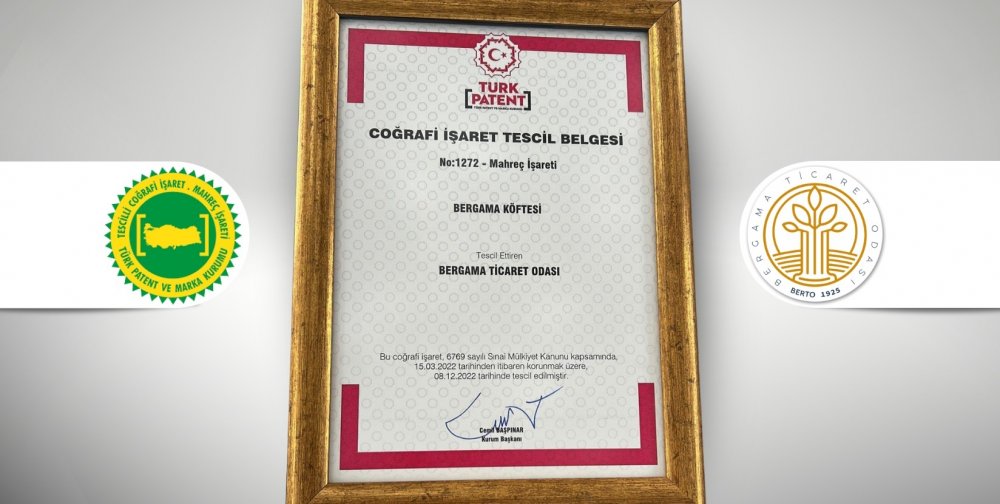 Bergama Ticaret Odası (BERTO), Türk Patent Enstitüsü’ne yaptığı başvuru sonucu, meşhur Bergama Köftesi'nin Coğrafi İşaret Tescili'ni aldı.