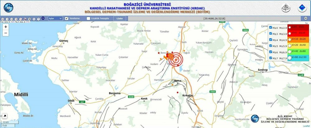 Afet ve Acil Durum Yönetimi Başkanlığı (AFAD) Deprem Dairesi Başkanlığı'nın verilerine göre, geçtiğimiz gün saat 01.36'da Manisa'nın Soma ilçesinde 4.8 büyüklüğünde deprem kaydedildi. Yerin 10,24 kilometre derinliğinde olan deprem, Manisa kent merkezi ve ilçelerinin yanı sıra başta İzmir olmak üzere çevre illerden de hissedildi.