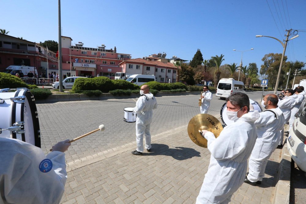 Memleketim, Çav Bella ve Güzel Günler Göreceğiz melodileri ile kentin sokaklarını coşturan Efes Selçuk Belediye Bandosu, sağlık çalışanlarından da tam not aldı.