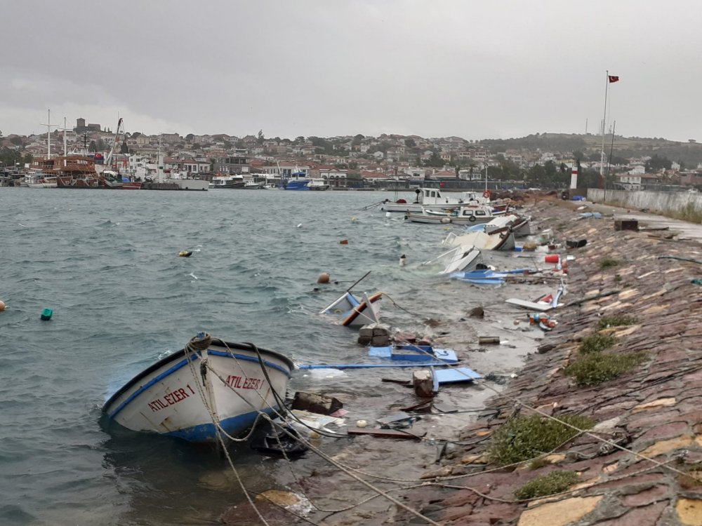 Edinilen bilgiye göre, Balıkesir'in tatil yerlerinden olan Ayvalık'ı kuvvetli fırtına vurdu. Çamlık ve Armutçuk Mevkileri'nde yaz sezonunda turistleri gezdiren gezi teknelerinden onlarcası fırtınanın etkisi ile battı.