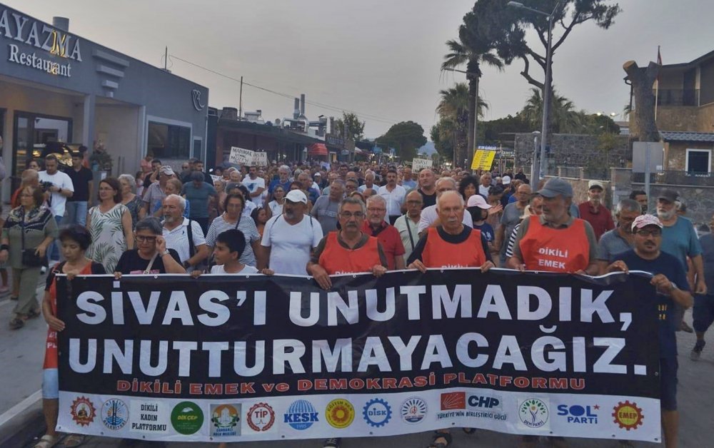 Dikili Emek ve Demokrasi Platformu’nun bileşenlerinin desteği ile Alevi Kültür Dernekleri Dikili Şubesi öncülüğünde gerçekleştirilen anma programı Bülent Ecevit Bulvarı’ndan Atatürk Meydanı’na yapılan yürüyüş ile başladı. Yürüyüş sırasında ise Olof Palme Barış Parkı’nda Sivas’ta hayatını kaybeden 35 kişinin anısına denize karanfiller bırakıldı.