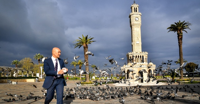 İzmir Büyükşehir Belediye Başkanı Tunç Soyer Konak Meydanı’nın simgesi haline gelen güvercinleri de unutmadı. İzmirlilerin attığı yemlerle beslenen güvercinler, meydanın eski kalabalığını yitirmesi yüzünden aç kalınca her gün bir görevli güvercinleri yemlemeye başladı. Başkan Soyer de özellikle bisikletle geldiği günler, sırt çantasında getirdiği yemlerle güvercinleri besleyerek mesaiye başlıyor.