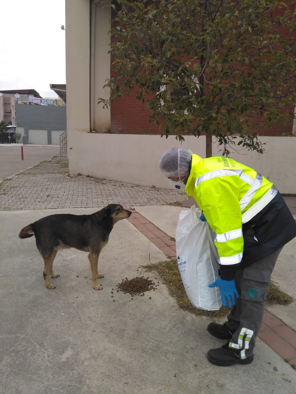 Sokaktaki hayvanların gıda ihtiyacını karşılayan işletmeler koronavirüs salgını nedeniyle hizmete ara verince devreye İzmir Büyükşehir Belediyesi girdi. Sokak ve meydanlarda insan yoğunluğunun da azalması yüzünden kedi köpek ile kuşların beslenmesi için ek önlemler alındı. Büyükşehir işletmelerin kapanmasından bu yana 11 merkez ilçede sokakta yaşayan hayvanlara 16 ton, merkez dışındaki 19 ilçede de 70 ton olmak üzere toplam 86 ton kuru mama ve yem dağıttı.