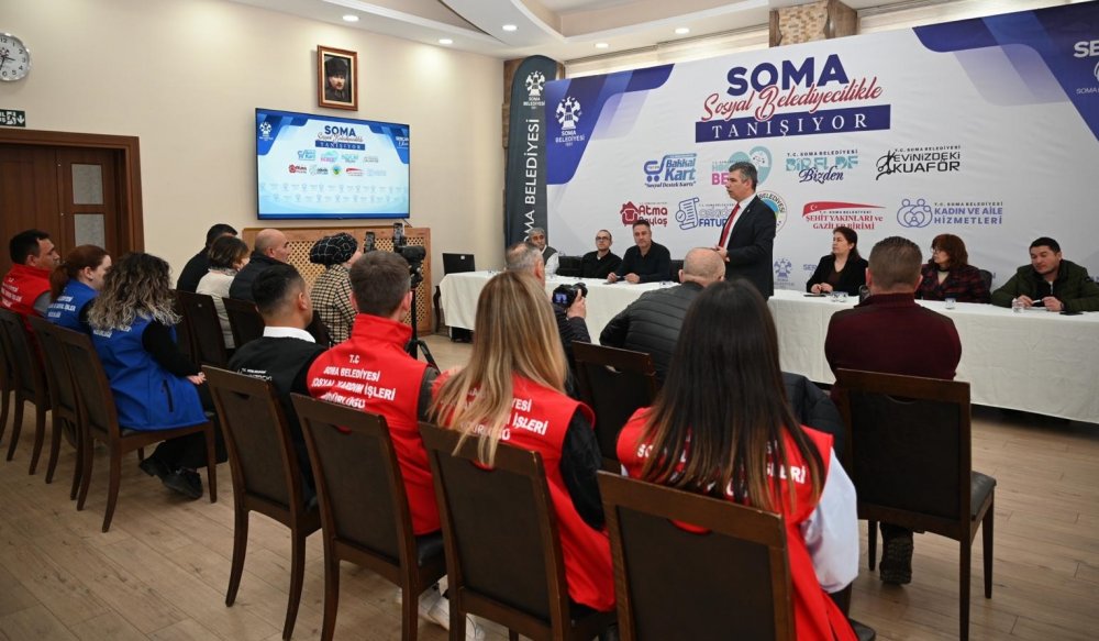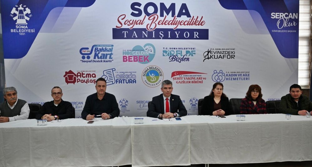 Toplantıda, Soma Belediyesi’nin yürüttüğü Bakkal Kart, Hoşgeldin Bebek, Askıda Fatura, Engelsiz Masa, Kadın ve Aile Hizmetleri, Şehit Yakınları ve Gaziler Birimi gibi birçok sosyal destek projesi tanıtıldı. Başkan Sercan Okur, Soma’nın artık yalnızca altyapı ve hizmet projeleriyle değil, sosyal belediyeciliğin güçlü bir örneği olarak da anılacağını vurguladı.