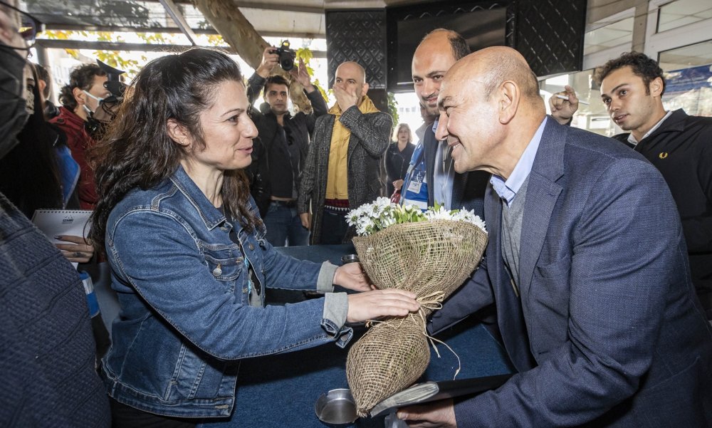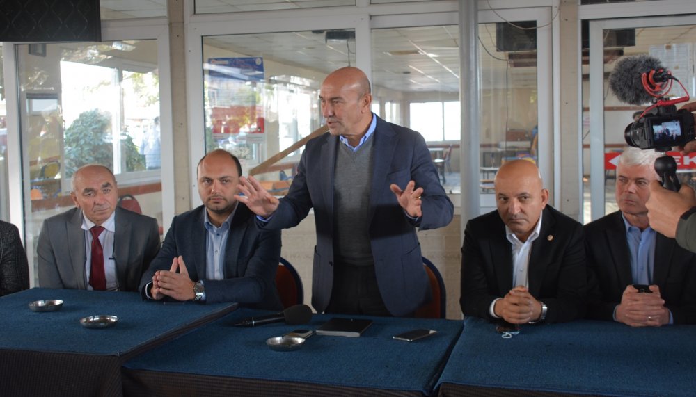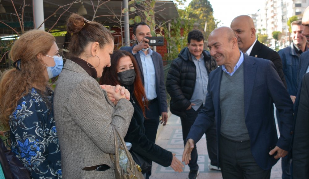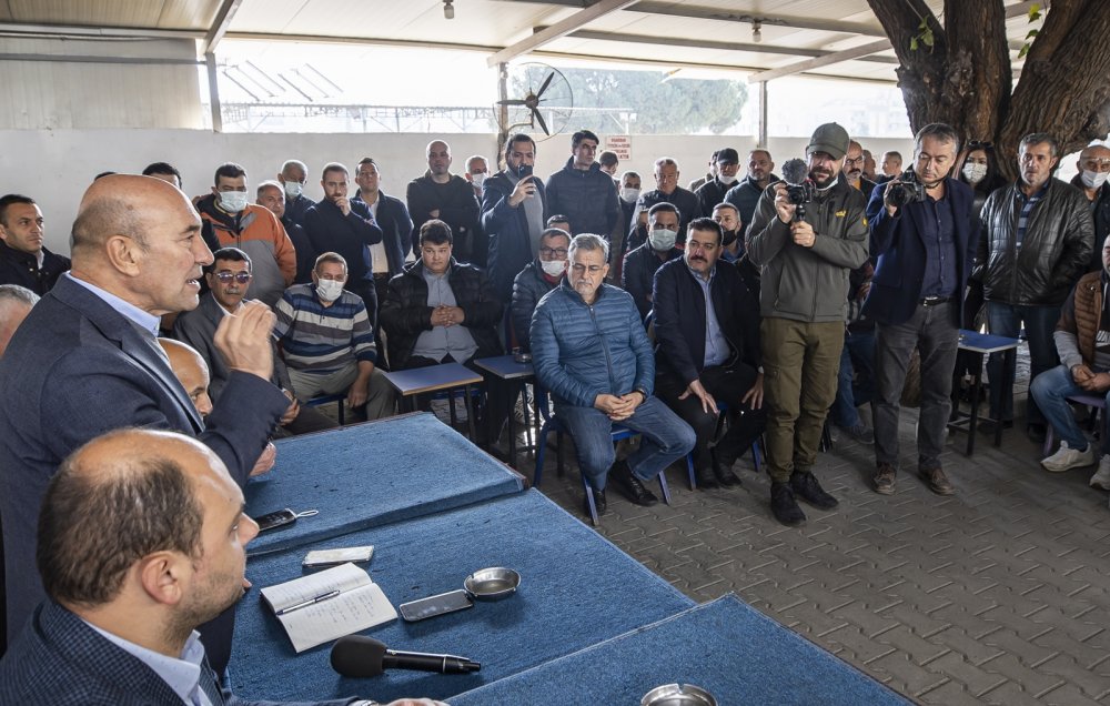 Stat esnafı ile buluşan Başkan Soyer; “Hepinizin bildiği gibi bununla ilgili bir dava süreci başlatmıştık. Fakat görünen o ki; ne dava tanıyorlar, ne hak, talep tanıyorlar” dedi. Soyer, bir esnafın ‘bizi dışarı atacaklar’ sözüne karşılık; “Elektriği, suyu kesip sizi dışarıya atacağız demek doğru değil. Burası kimsenin babasının çiftliği değil. Kimseyi dışarıya attırmayız. Burası dağ başı değil. Sonuna kadar mücadele ederiz. Hiçbirinizin kılına dokundurtmayız. Biz sizin yanınızda olacağız” ifadelerini kullandı.