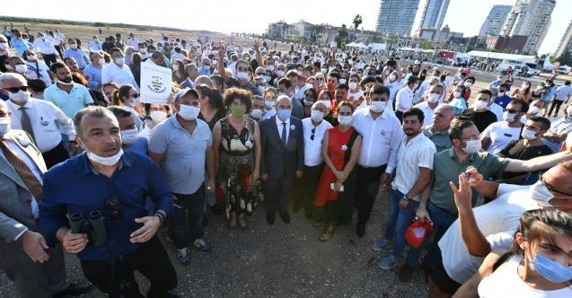Karşıyaka Belediye Başkanı Dr. Cemil Tugay ise “Hayranlık duyduğumuz ülkemiz tarihi boyunca insan eliyle işlenen pek çok kent suçuna şahitlik etti. Bugün burada, yeni bir tarihi yanlış yapılmaması için İzmir’e ve Karşıyaka’ya yapılmak üzere olan bir haksızlığa dur demek için bir aradayız. Yanı başımızdaki bu toprak parçası doğanın bu kente bir armağanıdır. Şehrin planında halkın ortak kullanımına ayrılmış bir alandır. Öyle kalmalıdır. İnsanlarımızın denizle, doğayla buluştuğu, yanı başımızdaki cennet yaşamın güzelliklerini izleyebildiği özel bir alandır. İtirazımız bu nedenledir. Bu alan hiç bir şekilde özel mülkiyete satılmamalı, yapılaşmaya açılmamalıdır. Başta TOKİ olmak üzere, konuyla ilgili tüm yetkili kurum ve kişileri haklı talebimizi dile getirdiğimiz bu sese, halkın sesine kulak vermeye, kamunun vicdanına saygı duymaya davet ediyoruz. Bu kanaatlerle, TOK İ’nin Karşıyaka, Mavişehir başta olmak üzere tüm İzmir’de yeşil alanları, rekreasyon alanlarını, spor alanlarını, belediye hizmet alanlarını ve bunlar gibi halkın kullanımına ayrılmış sosyal donatı alanlarını özel kişi ve kuruluşlara satışını durdurmasını talep ediyoruz” dedi.