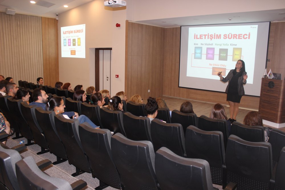 Ziyaretin sonrasında Hasan Şentürk Konferans Salonu’nda TOBB İzmir Kadın Girişimciler Kurulu Üyesi Dilek Selçuk’un sunumu, TOBB İzmir Kadın Girişimciler İcra Kurulu Üyeleri ile Bergama Kadın ve Genç Girişimciler Kurulu Üyelerinin katılımıyla “Kurumsallaşmada İletişimin Gücü” konulu seminer gerçekleştirildi.