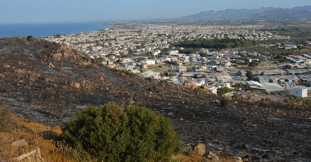 İsmetpaşa Mahallesi'ndeki Botanik Bahçesi yakınındaki sazlık alanda, dün saat 22.30 sıralarında, alevler yükselmeye başladı. Alevler, rüzgarın etkisiyle kısa sürede yakındaki tarım arazisi ile çamlık alana da sıçradı. Yerleşim yerine yaklaşık 100 metre uzaklıktaki alevleri fark edenler, itfaiye bildirdi. İhbar üzerine bölgeye 17 itfaiye aracı, İzmir Orman Bölge Müdürlüğü'ne ait 3 arazöz ile çok sayıda orman işçisi sevk edildi. Balıkesir'in Ayvalık ve İzmir'in Bergama ilçelerinden de takviye itfaiye ekipleri, bölgeye sevk edildi. Alevlerin Botanik Bahçesi ve evlere yaklaşık 30 metre kadar yaklaşması endişeye neden oldu. Mahalleden yaklaşık 30 genç de itfaiye aracı ve arazözlerin hortumlarının taşınmasına yardım ederek, söndürme çalışmalarına destek verdi. Tedbir amacıyla yakındaki Sarıgül Sitesi'nde bulunan 20 villa boşaltıldı. Ekipler, alevlerin villalara ulaşmaması için yoğun çaba harcadı. Alevler, 2 saatlik müdahale sonucu güçlükle söndürüldü. Yangında, ilk belirlemelere göre, küçük bölümü zeytin ağaçları ile kaplı tarım arazisi, kalanı ise çamlık olmak üzere toplam 2,5 hektar alanın zarar gördüğü belirtildi.