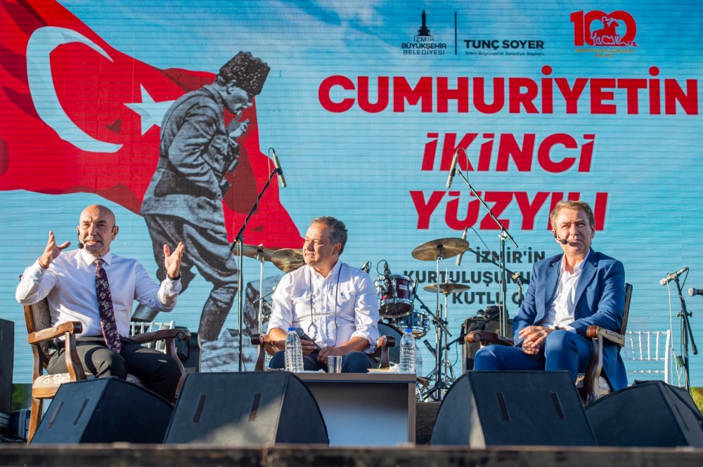 İzmir'in üç buçuk yıl işgalin ardından büyük bir yangın yaşadığını, beş ay sonra da Atatürk'ün İzmir'de İktisat Kongresi düzenlemeye karar verdiğini belirten Başkan Soyer, sözlerini şöyle sürdürdü: “Türkiye'nin tüm kasabalarından delegeleri İzmir'e getiriyor. Daha barış anlaşması imzalanmamış, ortada devlet yok. Yeni kurulacak devletin iktisat politikalarını belirlemek üzere bin 135 delege bir araya geliyor. Bu olağanüstü bir iş. Onun için İzmir sadece İzmir'den ibaret değildir. Olağanüstü bir mucize ve büyük zaferin arkasından gelen büyük bir barış dönemi. Mustafa Kemal Atatürk 30 Ağustos'tan sonra Ankara'ya döndüğünde Cumhuriyet düşünü gerçekleştirmek için çalışmaya başlıyor. Cumhuriyet düşünü de barışın tatlı güneşi olarak tarif ediyor. Ben de diyorum ki İzmir olarak bize Cumhuriyet'in ikinci yüzyılını demokrasinin tatlı güneşiyle aydınlatmak yakışır. Bu bizim atalarımıza borcumuzdur, bizden sonra gelen kuşaklara borcumuzdur.”