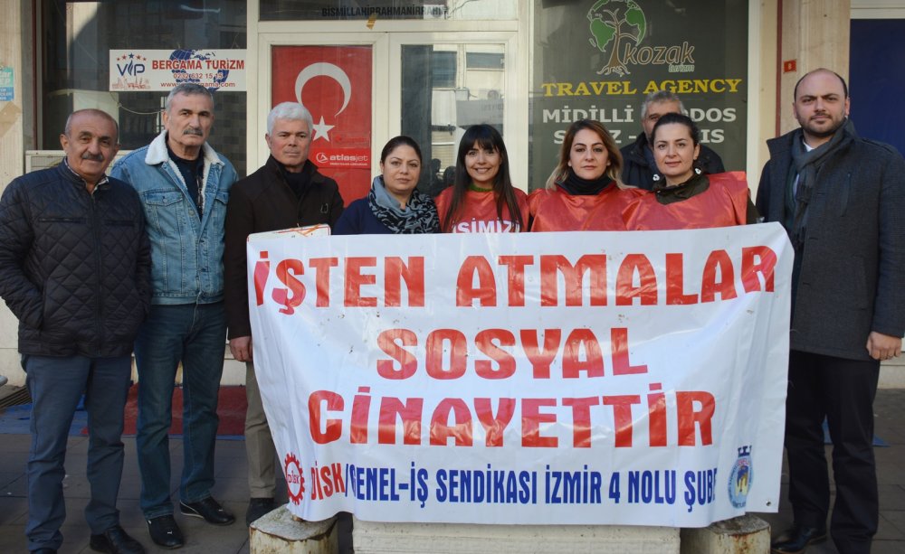 Akatlı ayrıca; “Arkadaşlarımızın işlerine verimsiz oldukları şeklinde ki bir bahane ile ilişkilendirerek, haksız bir biçimde işlerine son verildi. Bu arkadaşlarımız işten çıkarılmadan önce sürüldüler, zorla izinleri kullandırıldı, tehdit edilip psikolojik şiddete maruz kaldılar. Ancak hepsine direndiler. Sendikalarını değiştirmedikleri içinde şuanda buradalar. İşçilerin kendi sendikalarını seçmek kişisel haklarıdır. Sendikalı olmak bir suç değildir. Bunu bir suç gibi göstermek, sendikalıları toplumun dışına itmek, sendikalaşmayı kendilerini sorgulayan kitleleri susturma hareketinin bir parçası olarak görmek, AKP iktidarının sistematik olarak sürdürdüğü bir tutum. Tüm sivil toplumu, tüm sendikaları susturarak kendi tek adam iktidarlarını kalıcı kılmak, kimsenin kendilerini sorgulamadığı bir düzen kurmak istiyorlar. Hâlbuki insanları işlerinden atmak yerine hep beraber Bergama’ya hizmet için bir kültür yerleştirmek önemli. Bunu yapmadı. Ancak şunu net olarak bilmelerini isterim. Bizim bu arkadaşlarımız yalnız değillerdir. Haksızlığa uğrayan tüm arkadaşlarımızın her yerde arkasındayız” dedi.