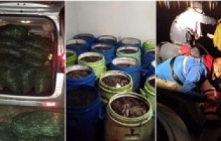 Dikili'de kaçak avlanılan 1 ton deniz patlıcanı ele geçirildi.