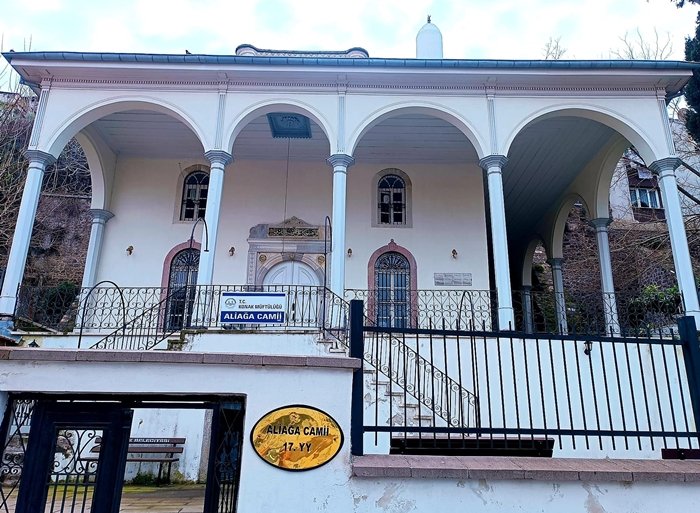 Konaktaki doğum hastanesinin sol tarafından yukarıya doğru çıkınca önünde selvi ağacı bulunan bir camii ile karşılaşırsınız. 18 yy da odun pazarı mahallesi diye anılan bu mahallede inşa edilmiştir. Camiinin banisi Gedizli Ali Ağa dır. Camiinin yapılış tarihi kitabeden öğrendiğimize göre 1672 yılıdır. Ayrıca yapı1896-1958 ve son olarakta 2021 yılı olmak üzere 3 defa yenileme geçirmiştir. Ali Ağa caminin kitabesi Ana giriş kapısının sağ tarafında bulunmaktadır.