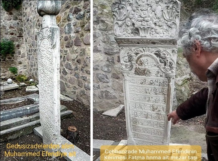 Ali Ağa camisinin avlusunda ulu selvilerin gölgesi altında kuş sesleri ve gönül dinlendiren su şırıltıları arasında geçmişi anmak ayrı bir zevk. Oradaki bulduğumuz bu güzel üç mezar taşlarının kimlere ait olduğunu açıklayarak yazımızı tamamlayalım.