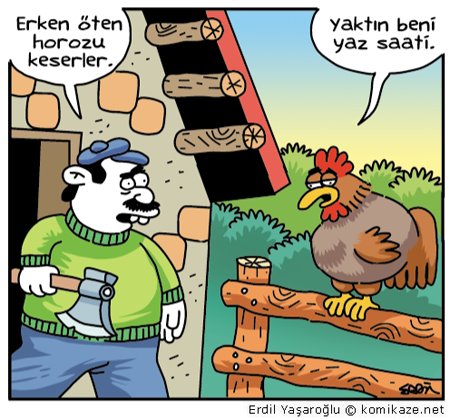 Dipnot; “Öyle horozlar vardır ki, öttükleri için güneşin doğduğunu sanırlar.” Ledric Dumont.