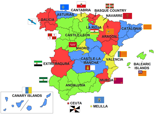 1978’de yürürlüğe giren anayasaya göre İspanya 17 özerk bölge ve 2 özerk kentten oluşan yönetsel yapıya kavuşmuştur.