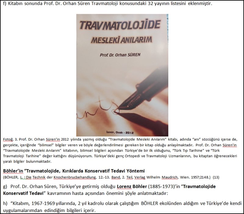 – Prof. Dr. Orhan Süren’in emekli olduktan sonraki yıllar içinde yazmış olduğu ve 2012 yılında yayınladığı “Travmatolojide Mesleki Anılarım” kitabının içeriği, son derece “bilimsel” özelliktedir (1).